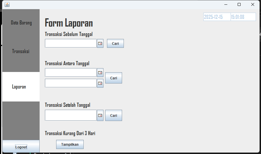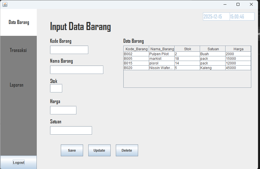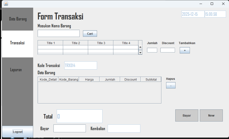 Aplikasi kasir berbasis desktop merupakan sistem penjualan yang dijalankan langsung pada komputer tanpa memerlukan akses melalui browser. Aplikasi ini dibuat untuk membantu proses transaksi pada berbagai jenis usaha seperti toko retail dan UMKM agar dapat berjalan lebih cepat dan tertata. Dengan tampilan antarmuka yang sederhana, pengguna dapat dengan mudah mengoperasikan aplikasi dalam kegiatan transaksi sehari-hari. Dalam proses transaksi, aplikasi kasir desktop memungkinkan kasir memilih produk, memasukkan jumlah pembelian, serta menghitung total pembayaran dan kembalian secara otomatis. Aplikasi ini juga menyediakan pengelolaan data barang yang mencakup kode produk, harga, dan stok, di mana setiap transaksi akan langsung memperbarui jumlah persediaan. Selain itu, sistem hak akses pengguna diterapkan untuk menjaga keamanan data kasir. Aplikasi kasir berbasis desktop umumnya terhubung dengan database lokal sehingga dapat digunakan secara offline dan data tersimpan dengan aman. Seluruh transaksi yang dilakukan dapat diolah menjadi laporan penjualan berkala yang menampilkan informasi pendapatan dan aktivitas penjualan. Dengan adanya fitur laporan ini, pemilik usaha dapat melakukan evaluasi serta pengambilan keputusan bisnis secara lebih efektif dan akurat. untuk menjalankannya membutuhkan java versi 23