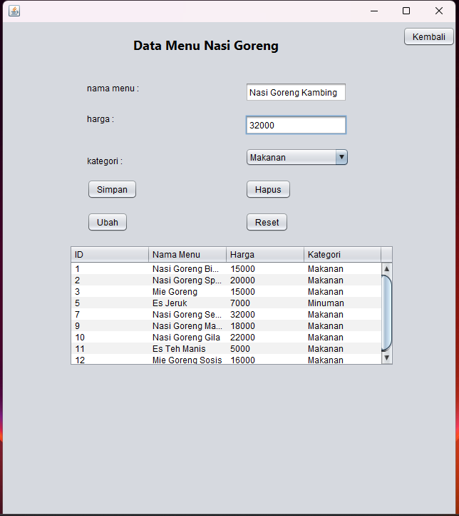 Aplikasi Kasir Nasi Goreng Berbasis Dekstop