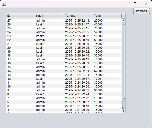 Detail transaksi (double klik pada laporan)