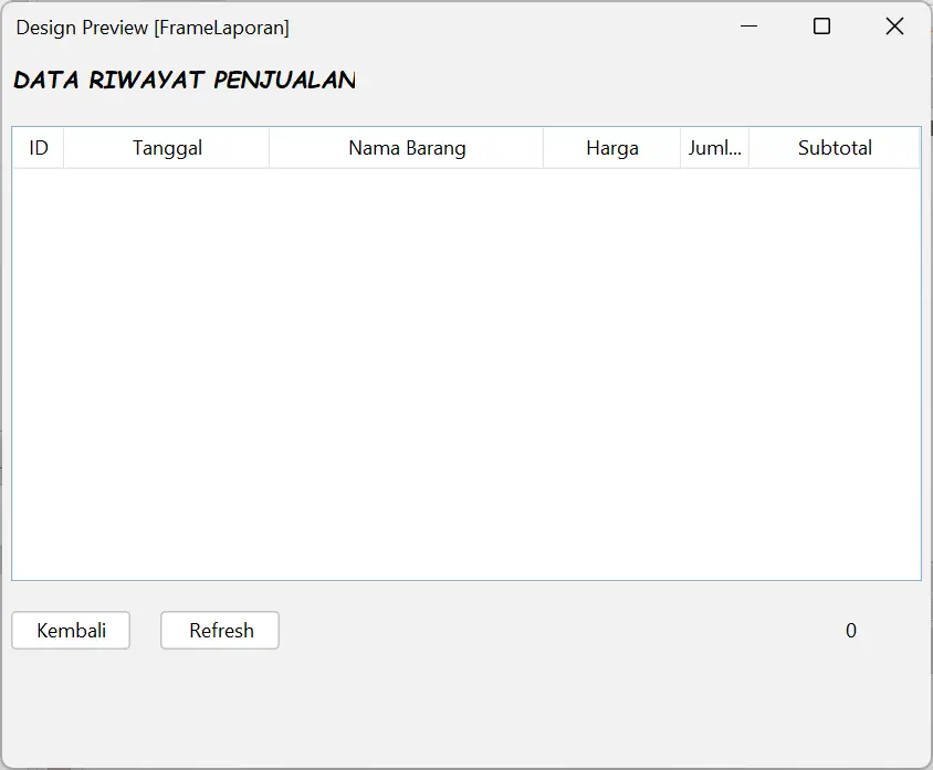 Riwayat Penjualan: Tabel laporan yang mencatat detail setiap transaksi untuk keperluan pembukuan.