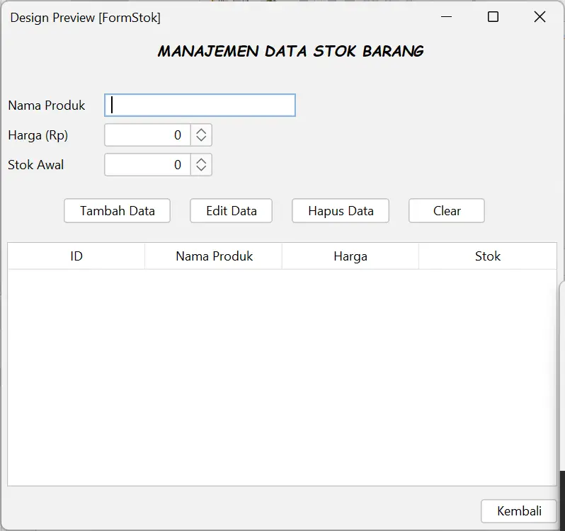Manfaat Karya: Aplikasi ini memudahkan pemilik usaha dalam memantau sisa stok barang secara langsung dan meminimalisir kesalahan hitung saat transaksi. Dengan format .exe dan database portabel, aplikasi ini sangat praktis karena bisa dijalankan langsung dari flashdisk di berbagai perangkat Windows tanpa konfigurasi tambahan.